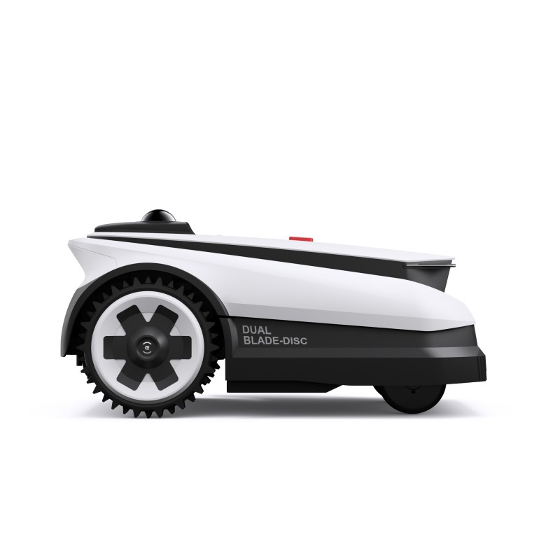 Mocny napęd 32 V napędza dwie tarcze tnące (6 noży, 3000 obr./min) i pozwala osiągnąć prędkość 0,7 m/s. Efektywność do 400 m² na godzinę – idealna na duże trawniki do 1600 m². Szybsze pokrycie terenu, mniej powrotów do ładowania i lepsza praca nawet z gęstszą trawą.