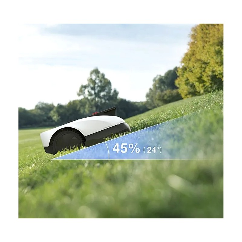 Pokonuj każde wymagające ukształtowanie terenu dzięki możliwości wspinania się po nachyleniach do 45% (24°), bez trudnodostępnych stref, dla kompleksowej pielęgnacji trawnika, z możliwością przekraczania przeszkód o wysokości do 3 cm.
